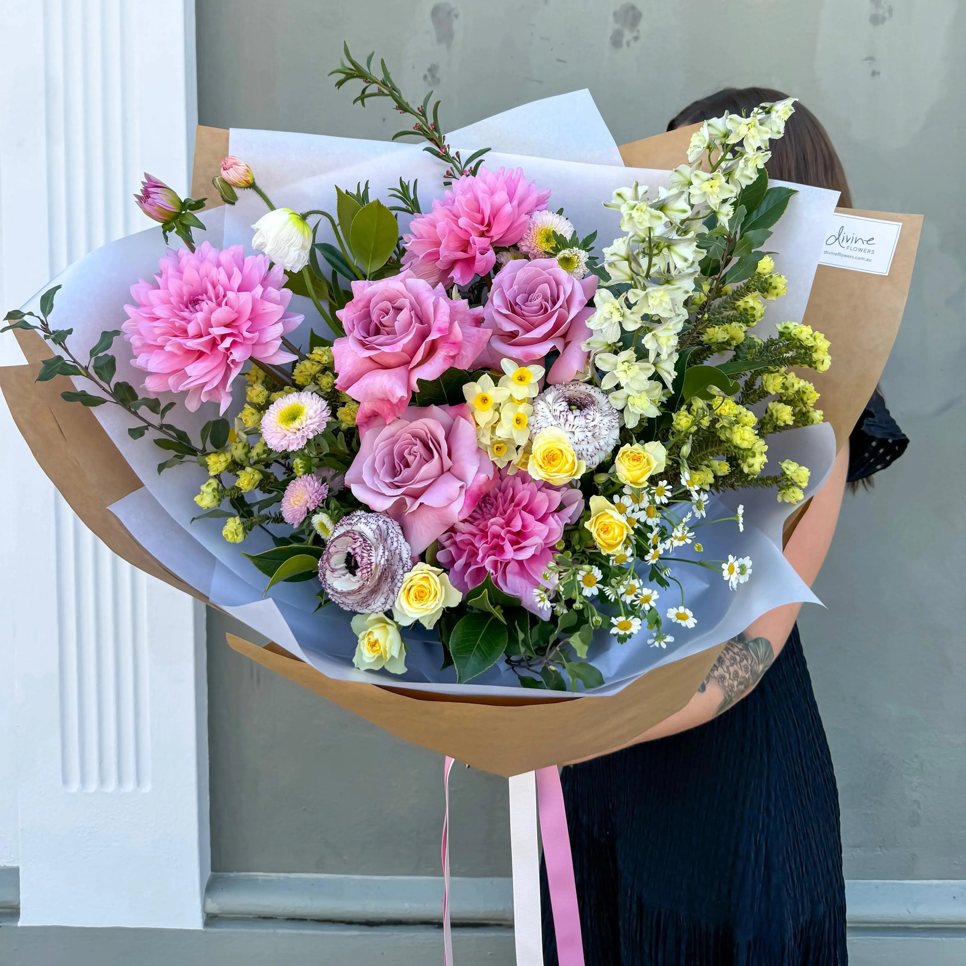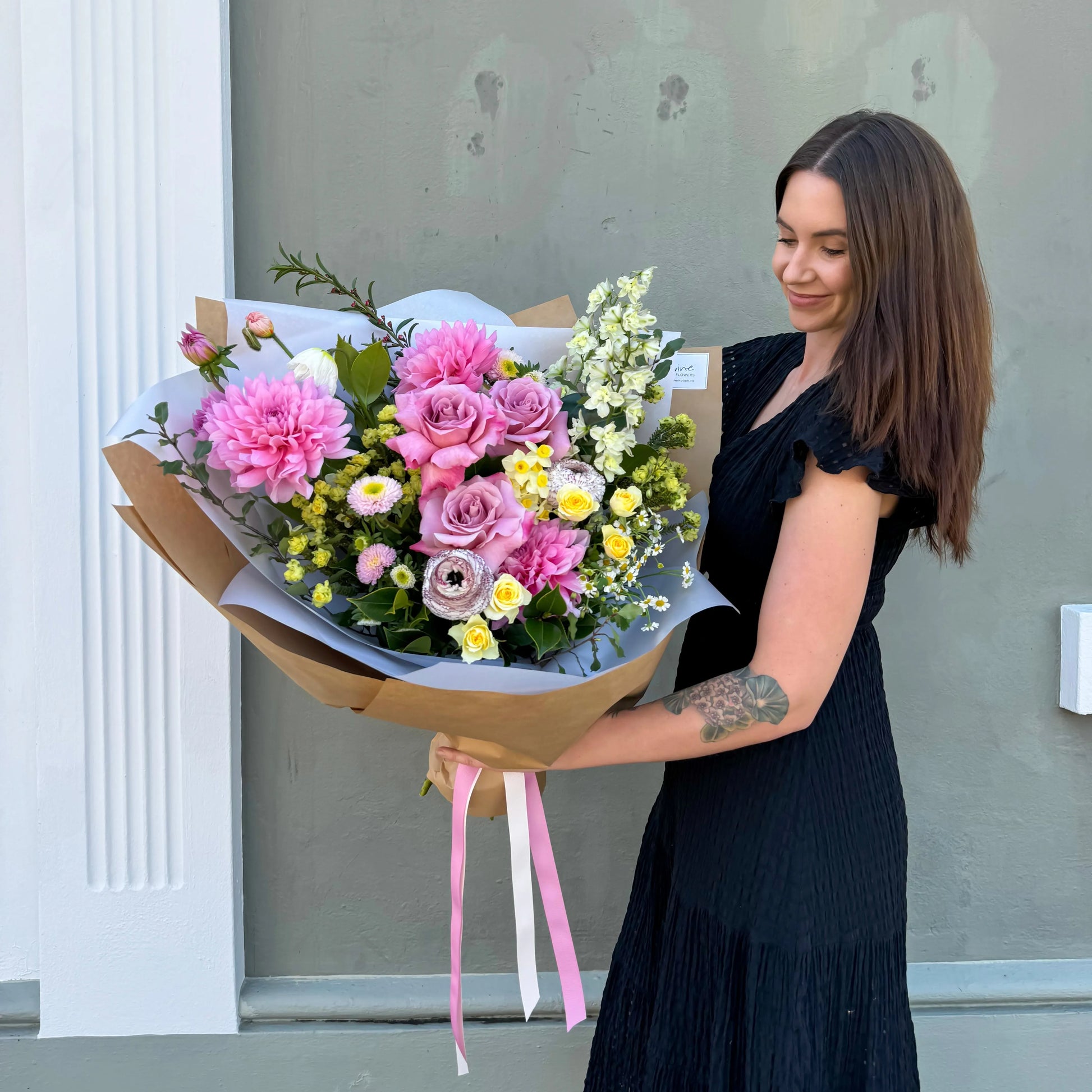 Do you love surprises or find it hard to make decisions? This design is perfect for you, offering a unique mix of carefully selected blooms, with each arrangement featuring handpicked flowers and colours chosen by our talented florists.