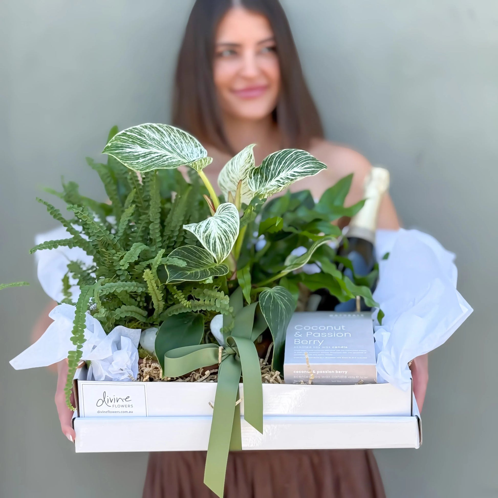 The Autumn planter tastefully bundled with a beautifully scented candle or take it up a notch candle and a full sized bottle of Chandon. Plants varieties will vary. Presented and delivered gift wrapped in our distinctive style.