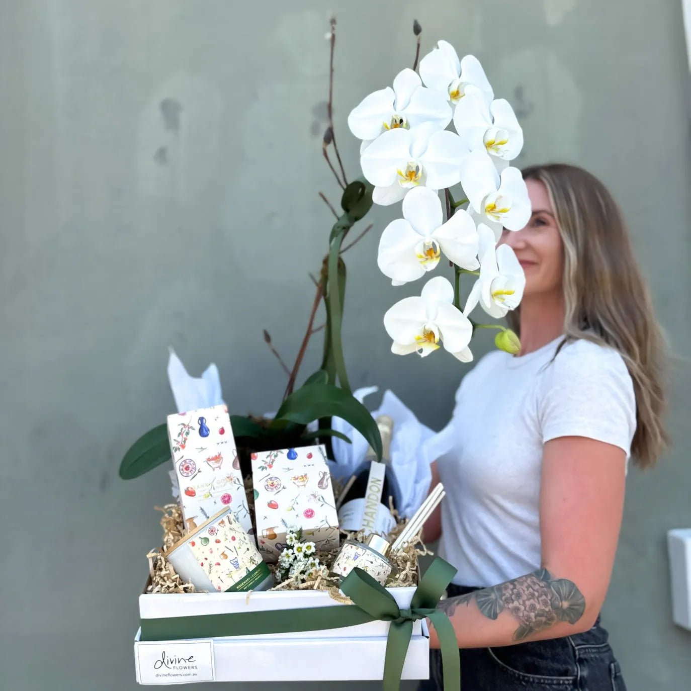 Raise a glass to special moments with the Orchid Celebration Luxe Hamper—a sophisticated blend of luxury and lasting beauty.